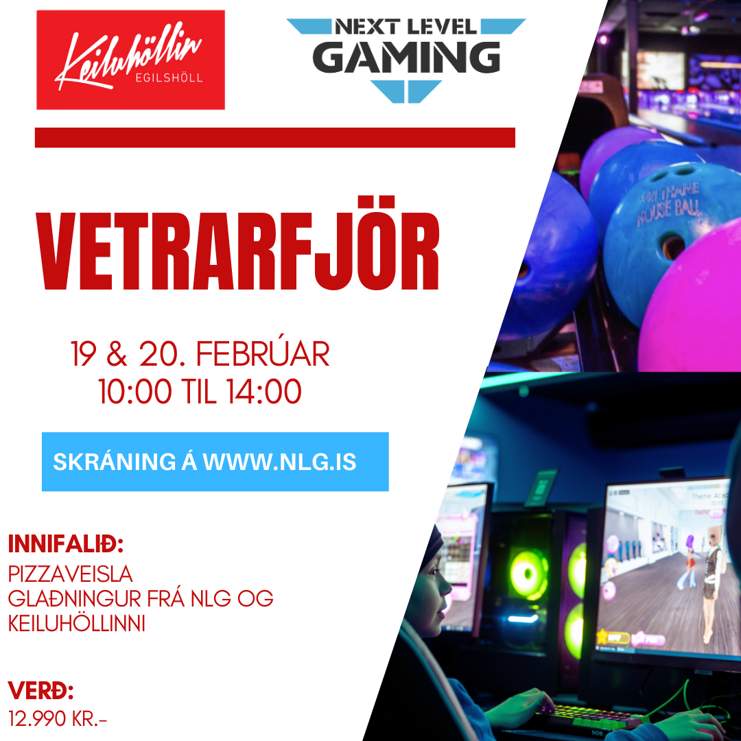 Next Level Gaming og Keiluhöllin bjóða upp á geggjað Vetrarfjör fyrir krakka á grunnskólaaldri dagana 19. og 20. febrúar frá kl. 10:00–14:00!